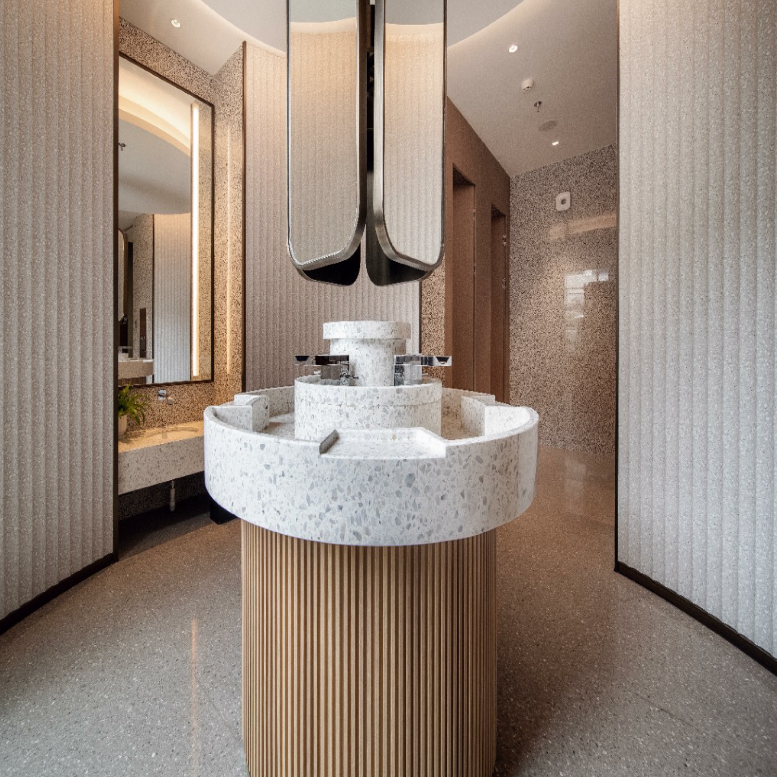 Terrazzo features include: