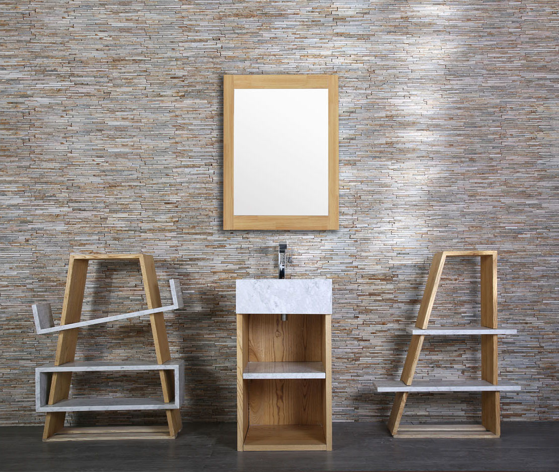 Treatment: Natural marble platform basin and carrying board match log lubricious ark of wood.